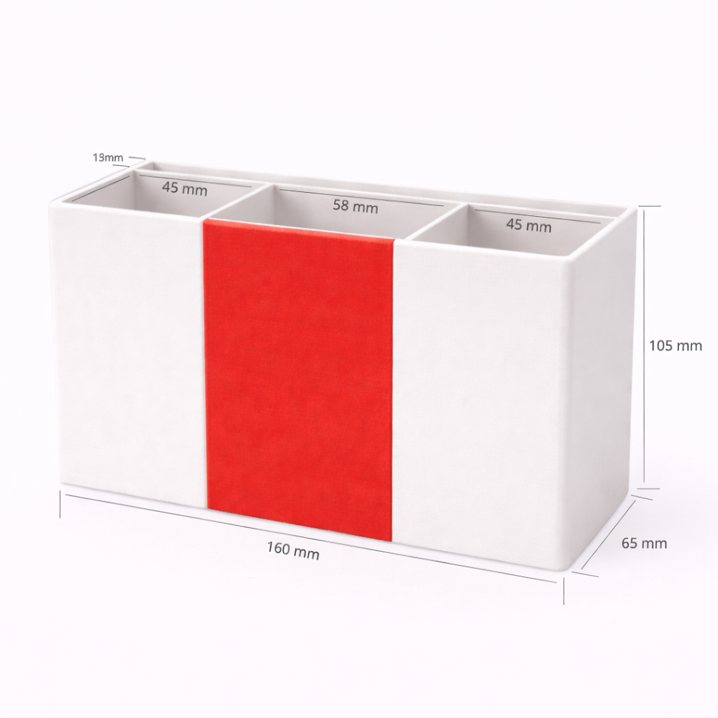 Dankzij de praktische indeling is er ruimte voor pennen, potloden en andere bureauaccessoires. De extra sleuf aan de achterkant is geschikt voor een notitieblok of kladblok, zodat alles overzichtelijk op één plek blijft.